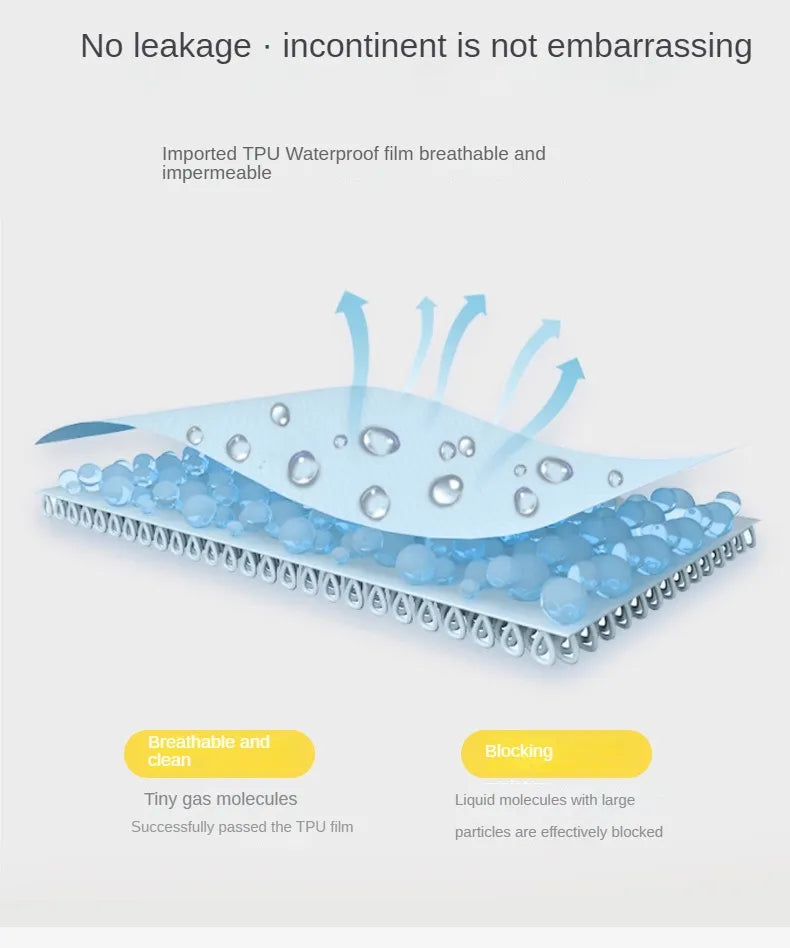 La partie absorbante en coton est la clé de leur efficacité. Cette matière offre un effet au sec, aidant à maintenir la peau sèche et confortable, tout en assurant une absorption bien supérieure aux tissus traditionnels. La triple épaisseur a été soigneusement pensée pour éviter les fuites, assurant une protection fiable et continue, même dans les situation les plus exigeantes.