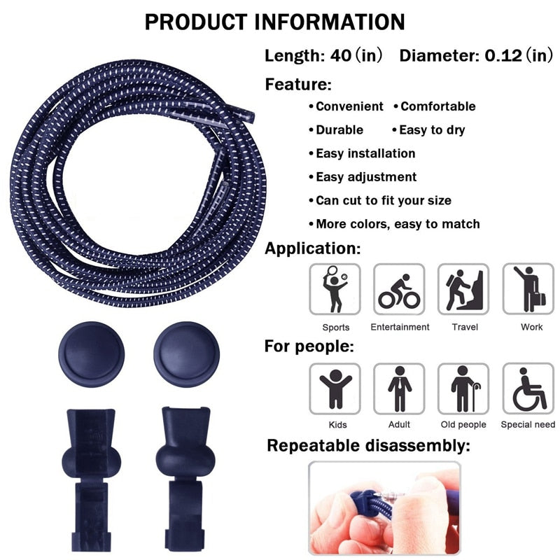 Ce n'est plus le cas, on vous présente nos lacets élastiques sans nœuds plus pratique et confortable qui permettent d’enfiler ses chaussures et de les retirer sans défaire les nœuds et correspondre à tout type de chaussure de ville.